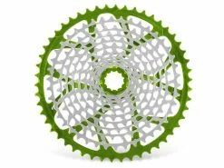 La cassette Garbaruk Standard HG 11 vitesses bénéficie d’une grande qualité de fabrication et vous permet de bénéficier d’un ratio de 455% (11-50 dents) tout en gardant votre roue équipée d’un corps de roue libre Standard HG. A la fois légère et accessible, elle offrira un haut niveau de performances à votre transmission 11 vitesses. Compatible uniquement avec les corps de roue libre type Standards type Shimano HG, cette cassette est fabriquée à partir d’un seul et même bloc d’acier pour les 10 premiers pignons. Le dernier pignon est quant à lui réalisé en aluminium 7075 anodisé ici en couleur Vert. Disponible en 11-46 et en 11-50 dents, la cassette Garbaruk vous offrira une grande précision de changement de vitesses, un poids plume, et une excellente durabilité. Pour la version 11-46 dents Garbaruk recommande de coupler la cassette avec des galets de dérailleur oversize . Pour la version 11-50 dents l’installation de galets de dérailleur oversize est obligatoire pour bénéficier du plus haut niveau de précision. La cassette Garbaruk 11 vitesses HG offrira à votre vélo un look incomparable grâce à son anodisation vert surtout si vous optez pour les chapes de dérailleur et galets pour dérailleurs disponibles dans la même couleur d’anodisation.