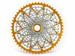 La cassette Garbaruk Standard HG 12 vitesses bénéficie d’une grande qualité de fabrication et vous permet de bénéficier d’un ratio de 520% (11-52 dents) tout en gardant votre roue équipée d’un corps de roue libre Standard HG. A la fois légère et accessible, elle offrira un haut niveau de performances à votre transmission 12 vitesses. Compatible uniquement avec les corps de roue libre type Standards type Shimano HG, cette cassette est fabriquée à partir d’un seul et même bloc d’acier pour les 11 premiers pignons. Le dernier pignon est quant à lui réalisé en aluminium 7075 anodisé ici en couleur Orange. Disponible en 11-52 dents, la cassette Garbaruk vous offrira une grande précision de changement de vitesses, un poids plume, et une excellente durabilité. Garbaruk recommande de coupler cette cassette avec un dérailleur Shimano 1×12 vitesses chape longue (SGS) afin de bénéficier du plus haut niveau de précision mais la marque indique que sa cassette sera aussi compatible avec les dérailleurs Sram 1×12 vitesses. Cerise sur le gâteau elle offrira à votre vélo un look incomparable grâce à son anodisation orange surtout si vous optez pour les chapes de dérailleur et galets pour dérailleurs Sram et Shimano aussi disponibles dans la même couleur d’anodisation.