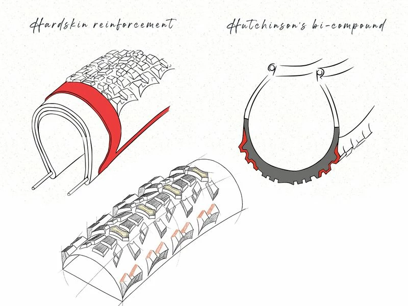Le pneu Hutchinson Tundra a été créé pour répondre au coté toujours plus technique du Gravel. Conçu pour une utilisation tout au long de l’année, le Tundra se sent parfaitement à l’aise sur des sentiers forestiers boueux comme sur des descentes rocailleuses très techniques. Sans pour autant négliger le rendement reconnu et apprécié des pneus Hutchinson, pour ne pas perdre en efficacité sur les surfaces compactes et les routes entre deux sentiers. Le Tundra est développé avec une carcasse 127 TPI, un must quand il s’agit de performance pure. Cette carcasse souple et légère permet un rendement de haute volée. Ce nouveau pneu gravel est également renforcé avec la grille Hardskin de tringle à tringle. En plus de l’épaisseur de gomme, ce véritable bouclier offre une protection supplémentaire contre les pierres tranchantes, les roches et tout autre matériau hostile rencontré lors d’une sortie gravel. Ce renfort issu du VTT a notamment fait ses preuves sur de nombreuses courses XC Marathon.