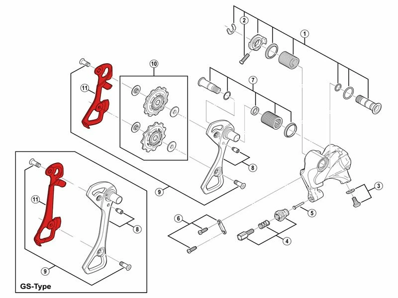 La chape interne Shimano pour dérailleur 11 vitesses Ultegra 6800 et 6870 est en aluminium et est disponible en courte (SS) ou en moyenne (GS). Elle est livrée sans vis.